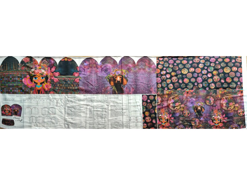 Čo môžem z tohto materiálu vytvoriť? Na panely je predtlačený strih na obojstrannú čiapku a nákrčník. Panel je možné podšiť samostatne s inou látkou a získať tak dva sety vhodné na jeseň alebo nepodšívať a mať trendy jarné sety. Podľa návodu je strih vhodný pre deti od 3 až 10 rokov. Osobná skúsenosť čiapka sedí od 2,5 rokov a často aj dospelým :-) všetko záleží od obvodu hlavičky a od materiálu, ktorým sa podšíva.